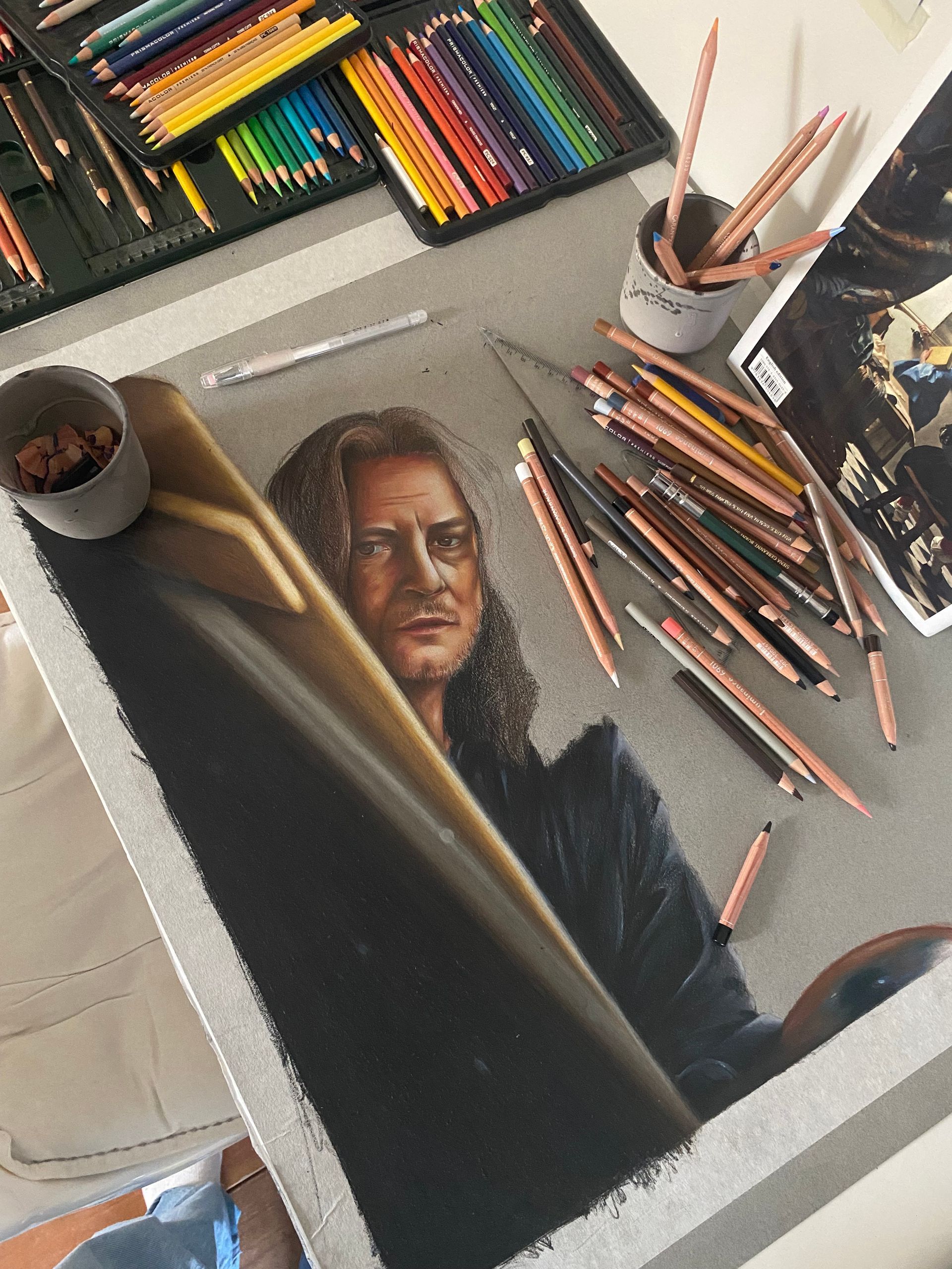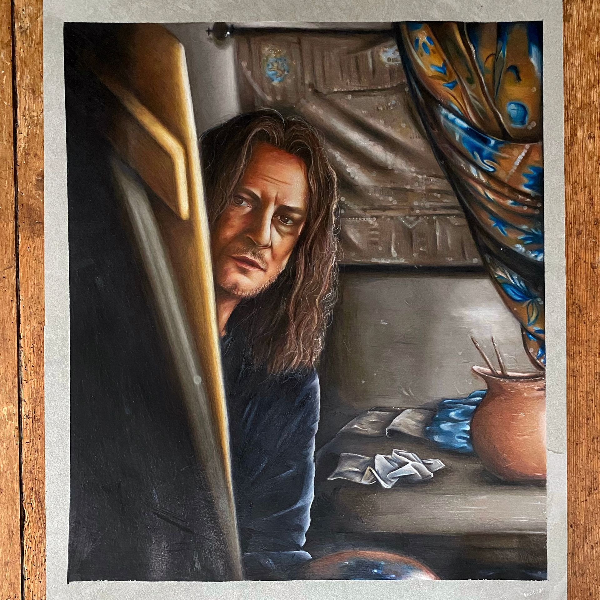 Toen ik zestien jaar was, was ik ook finalist in het kunst programma "De nieuwe Vermeer". Hierbij maakte ik een zelfportret van Johannes Vermeer, op de foto's te zien. Inmiddels heeft het werk al wat tripjes van en naar Delft mogen maken! :)