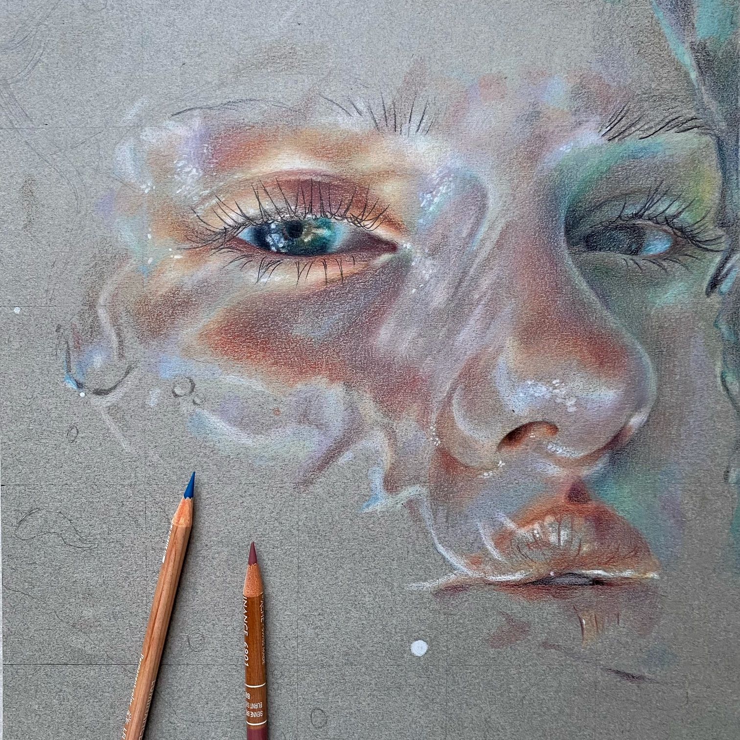 kleurpotlood op grijs papier