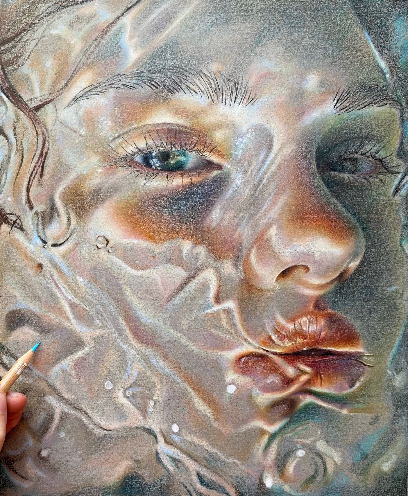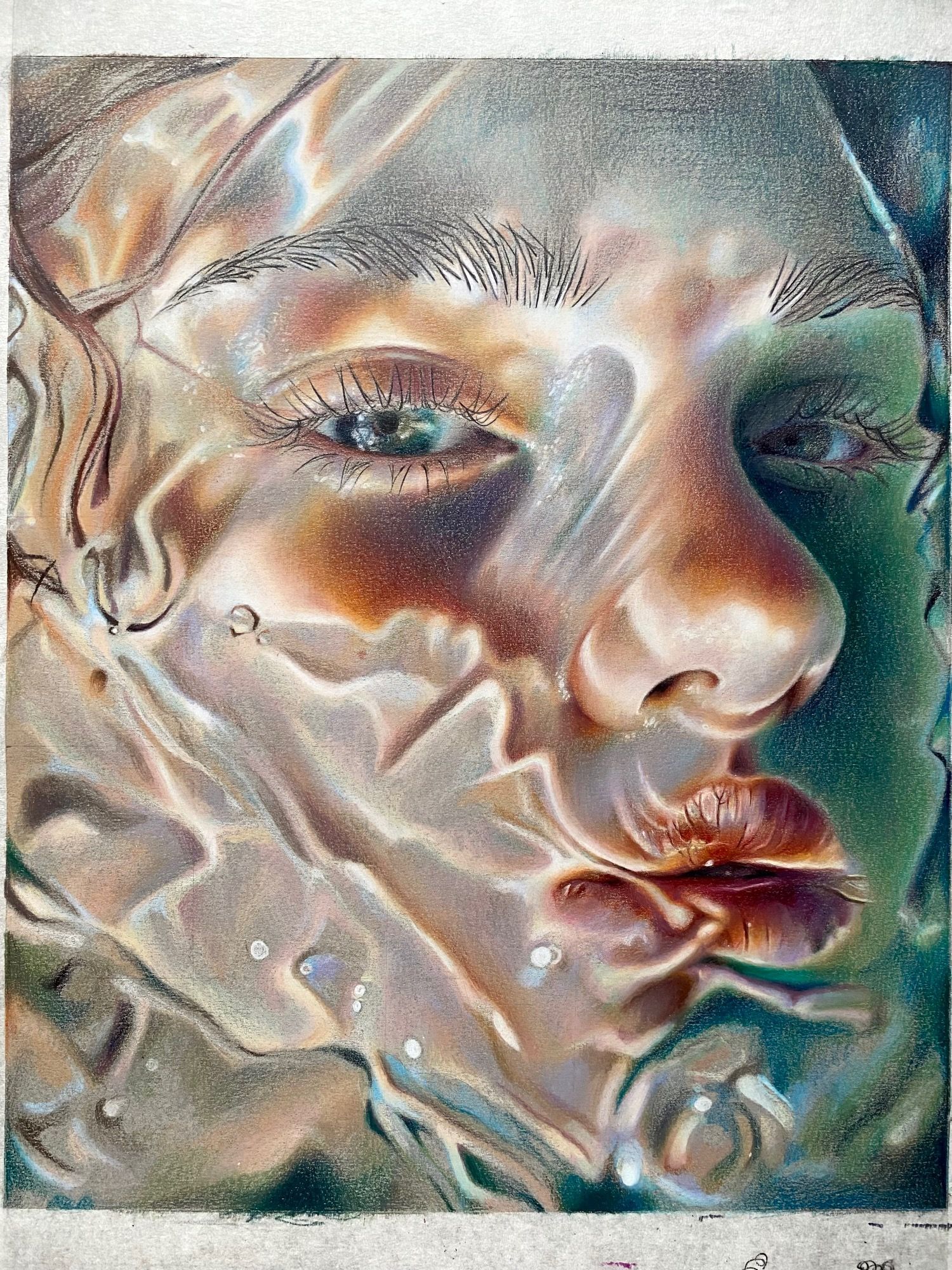 Portret waarin water, licht en kleur een grote rol spelen. 45x33cm. Gemaakt in augustus-september 2024.
